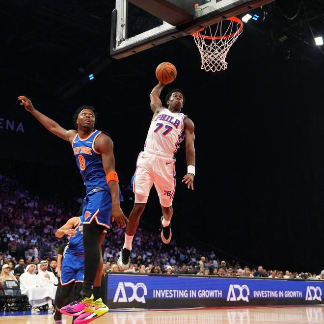 本场比赛恩比德和乔治依然没有出战,来到阿布扎比完全就是旅游的,一分钟都没打,都是坐在场下观战。没有两位核心,76人在场上也是陷入被动,上来就被尼克斯压制着,之后一直处于被动局面,完全无法跟上节奏,最多落后高达18分,好在最后换上替补球员的时候,76人这边成功将分差迫近,一度只剩下5分,可还是未能实现逆转。